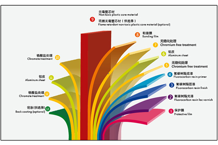 5、按照鋁塑復(fù)合板國家標準 GB/T17748-1999生產(chǎn)的氟碳外墻板,涂層采用70%的氟碳樹脂,在正常氣候環(huán)境條
